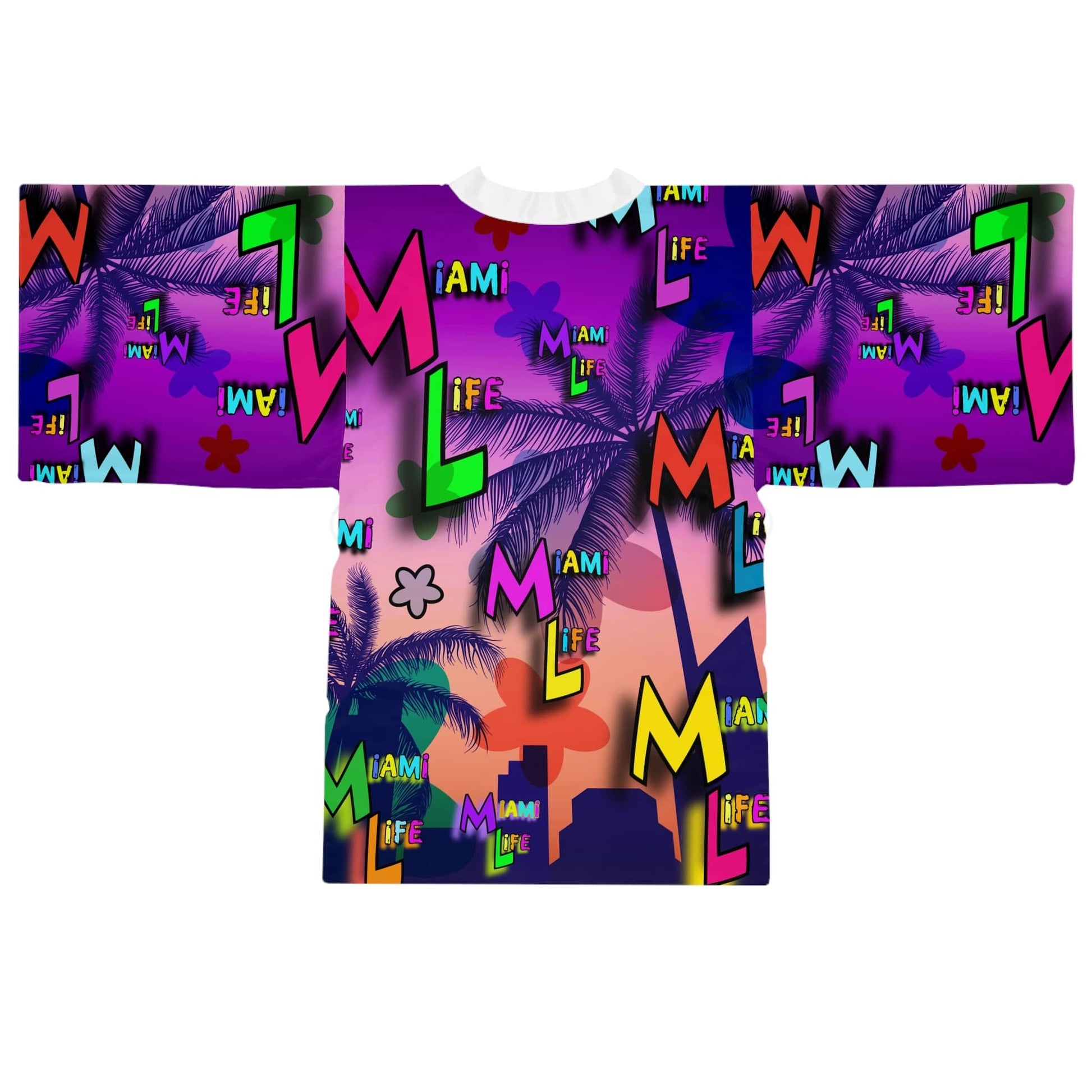 Miami Life Kimono Robe — Vibrant Tropical Long Sleeve Robe